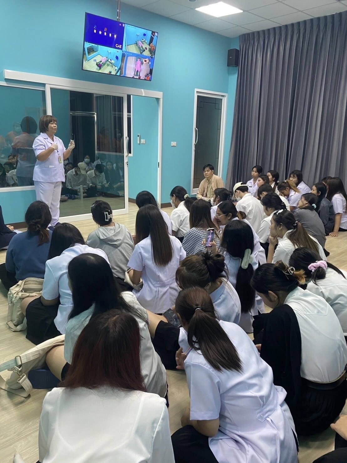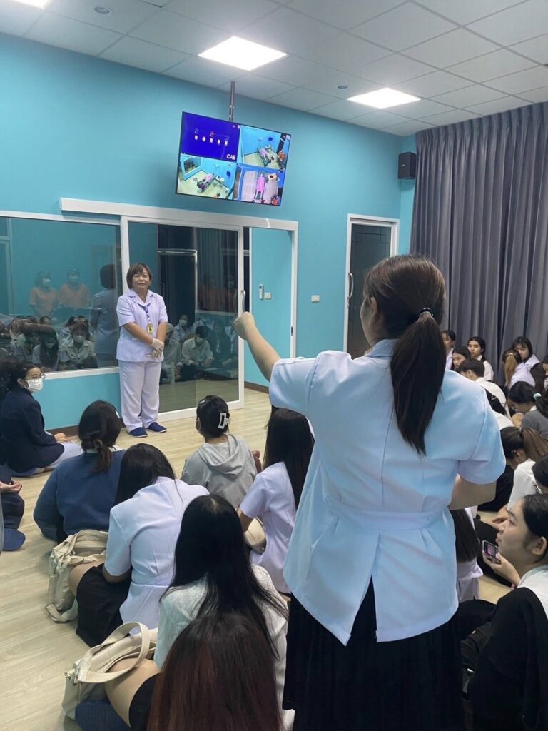 วันพฤหัสบดีที่ 1 พฤษภาคม 2568 เวลา 15.30 – 17.00 น. คณะพยาบาลศาสตร์ โดย อาจารย์ ดร.รัชดา พ่วงประสงค์ ประธานหลักสูตรพยาบาลศาสตรบัณฑิต ให้การต้อนรับและสาธิตการใช้งานหุ่นจำลองแก่นักศึกษาหลักสูตวิทยาศาสตร์การแพทย์ คณะวิทยาศาสตร์และเทคโนโลยี ชั้นปีที่ 3 จำนวน 54 คน ในการเข้าศึกษาดูงาน “หลักการทำงานของหุ่นจำลองสมรรถนะขั้นสูง” เพื่อให้นักศึกษาได้เรียนรู้จากอุปกรณ์จริงและเข้าใจหลักการทำงานของหุ่นสมรรถนะขั้นสูง (Lucina)